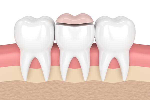 Crowns cover the entire tooth to the gum line and can be used to cap teeth that have suffered extreme damage or even as replacements for missing teeth. Inlays and onlays are placed, respectively, in or on the existing tooth. Patients can be recommended these treatments as an alternative to crowns if the tooth structure is still intact. Both procedures restore full functionality and appearance to a patient's tooth, but the crown covers the tooth entirely whereas inlays and onlays work with the existing tooth structure.